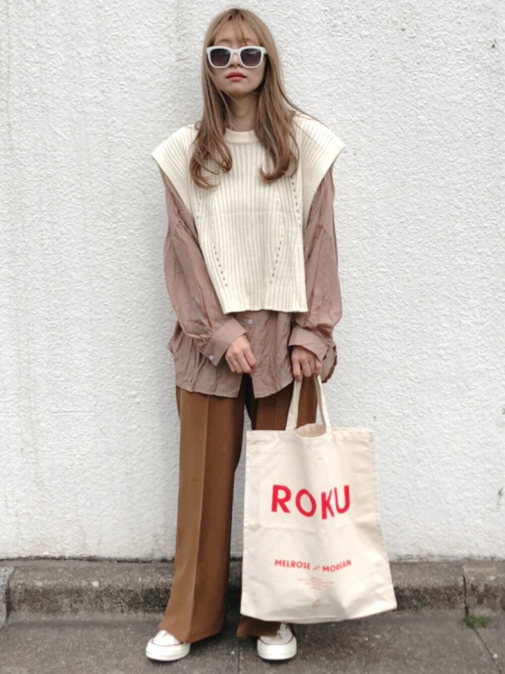 シャツとニットベスト。 ベージュだと思ったらちょっとブラウンに近いシャツでした😂 でもこれはこれでよしっ👌 Instagram👉komasan.1106