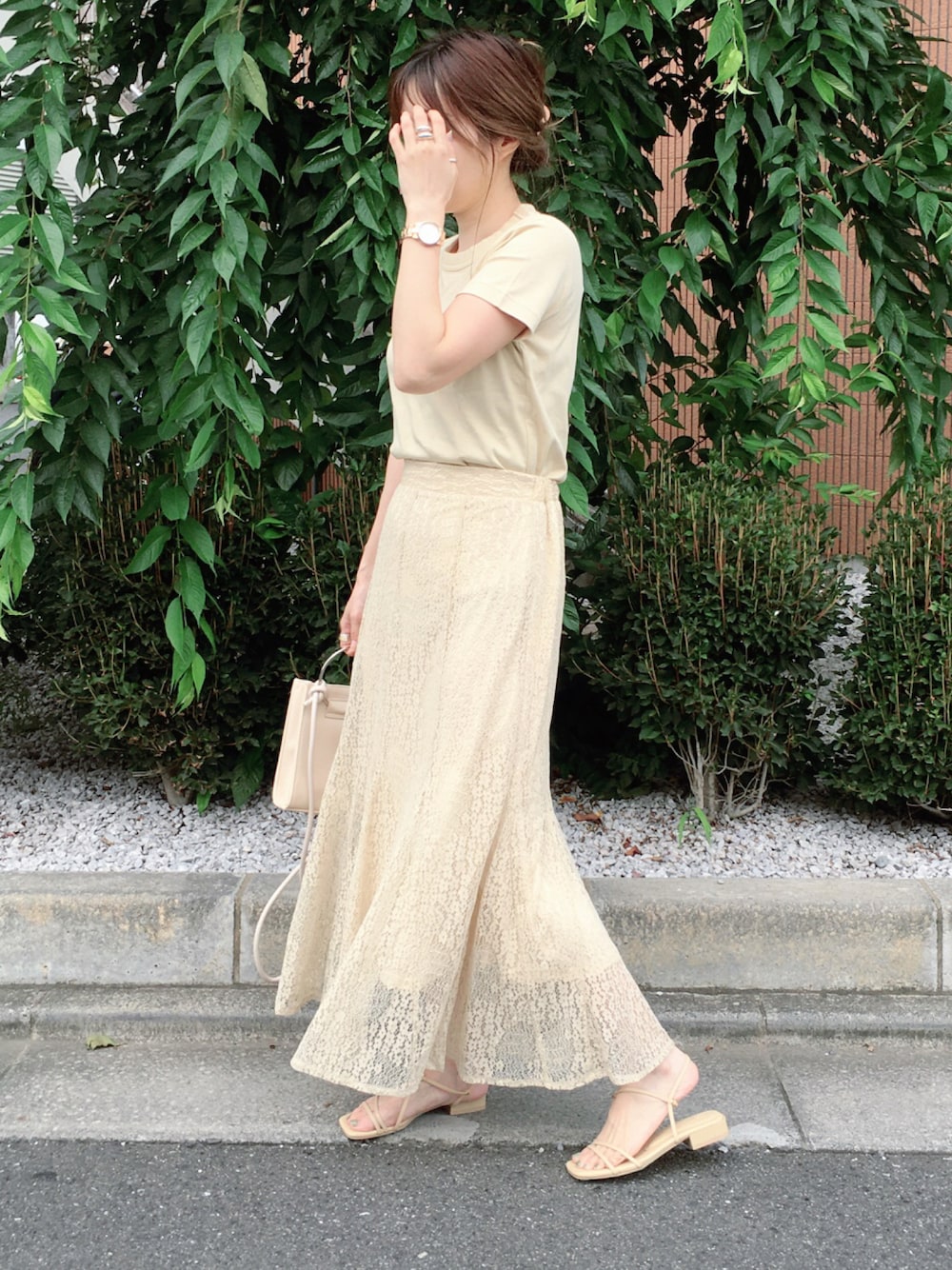 くすんだイエローのワントーンコーデ🍋 レースのスカートが上品で夏でも涼しく履けるのが嬉しい♡ 全身プチプラだけど高見えする気がします😏 Instagram👉komasan.1106
