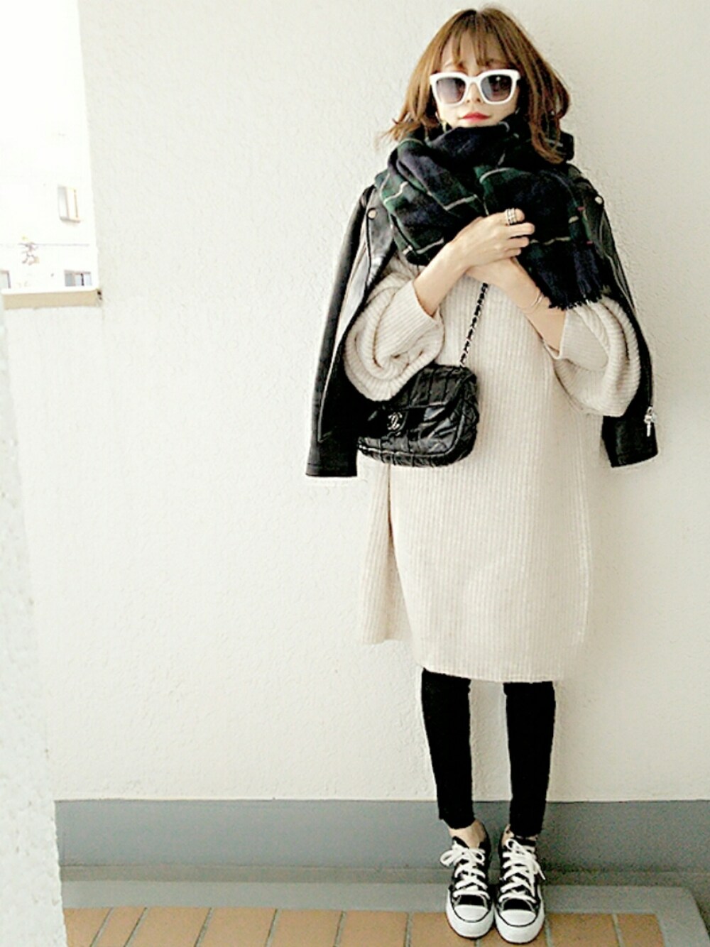 ライダース✖ニットワンピース😊💕 pants⏩zara instagram👉komasan.1106