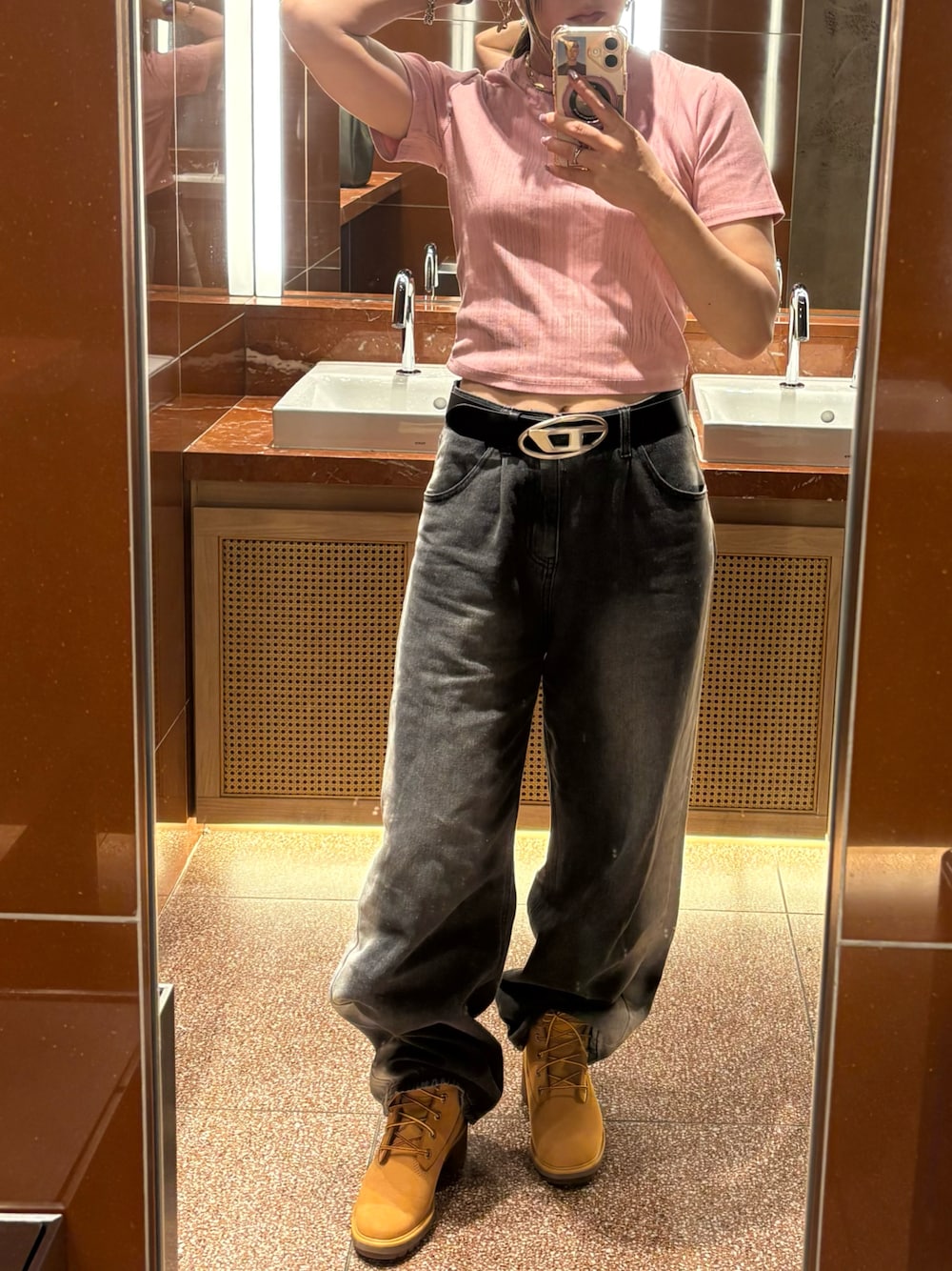 こみ | 骨ストイエベ秋2nd冬のデニムパンツ「《JaVaジャバコラボ》ゆるっと穿きこなす。サイドブリーチワイドルーズデニムパンツ」を使ったコーディネート