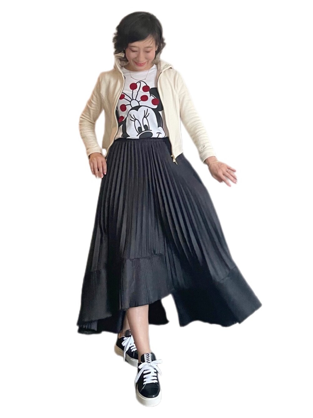 またまたアシンメトリープリーツスカートの着回しコーデ✨ 今度は黒❗️ ケイトスペードのミニーちゃんTシャツをインして、スニーカーとパーカーで大人ガーリーなカジュアルスタイル。 アシンメトリーだから、歩くたびにランダムな動きがあって素敵💓 ミニーちゃんTシャツもおリボンの赤いドットが程良い挿し色になってコーデしやすいです。 この赤があるのと無いのとではエライ違い😆 アシンメトリープリーツスカート https://itgirl.jp/smp/item/R11402.html kate spadeミニーちゃんTシャツ https://itgirl.jp/smp/item/R11265.html #ミニーちゃんコーデ #ミニーちゃんtシャツ #ロングスカートコーデ #ロングスカートとスニーカー #アシンメトリースカート #プリーツスカート #プリーツスカートコーデ #プリーツスカート着回しコーデ #大人ガーリーカジュアルコーデ #大人ガーリーファッション #大人カジュアルコーデ #大人ガーリースタイル #インポートセレクトショップ #ファッション通販サイト #モノトーンコーデ