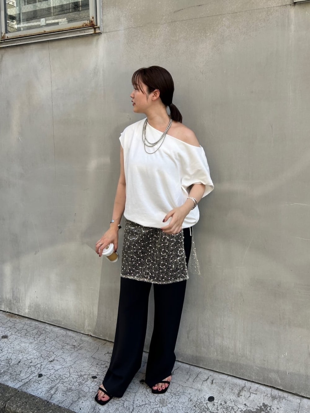 【トップス】 シンプルなのに主役として着れるオフショルスウェット! 何にでも合わせやすく少し肩を出すと女っぽくも着れて優秀すぎるアイテムです。 裾がドローコード入りでたぽっとさせるのもカワイイです! 【パンツ】40サイズ着用 マイナス3キロ見えなワイドパンツ! SHENERYの名品アイテムです。 シーズンレスで着用でき、お仕事にもオフの日にも使いやすい!とにかく美脚なイージーパンツです。 私は少しゆとりを出して履きたい時は40を選びます。 お悩み多い高身長の方に40はすごくおすすめです! 【スカート】 プラスワンにぴったりなラップスカート。 シンプルなスタイリングのポイントにもぴったりです!