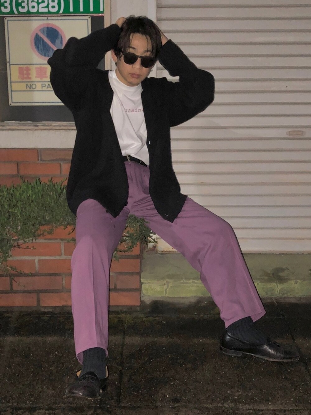 カーディガンは韓国のブランドです多分。笑 ダセェポーズは寝癖バレないように頭抑えてます