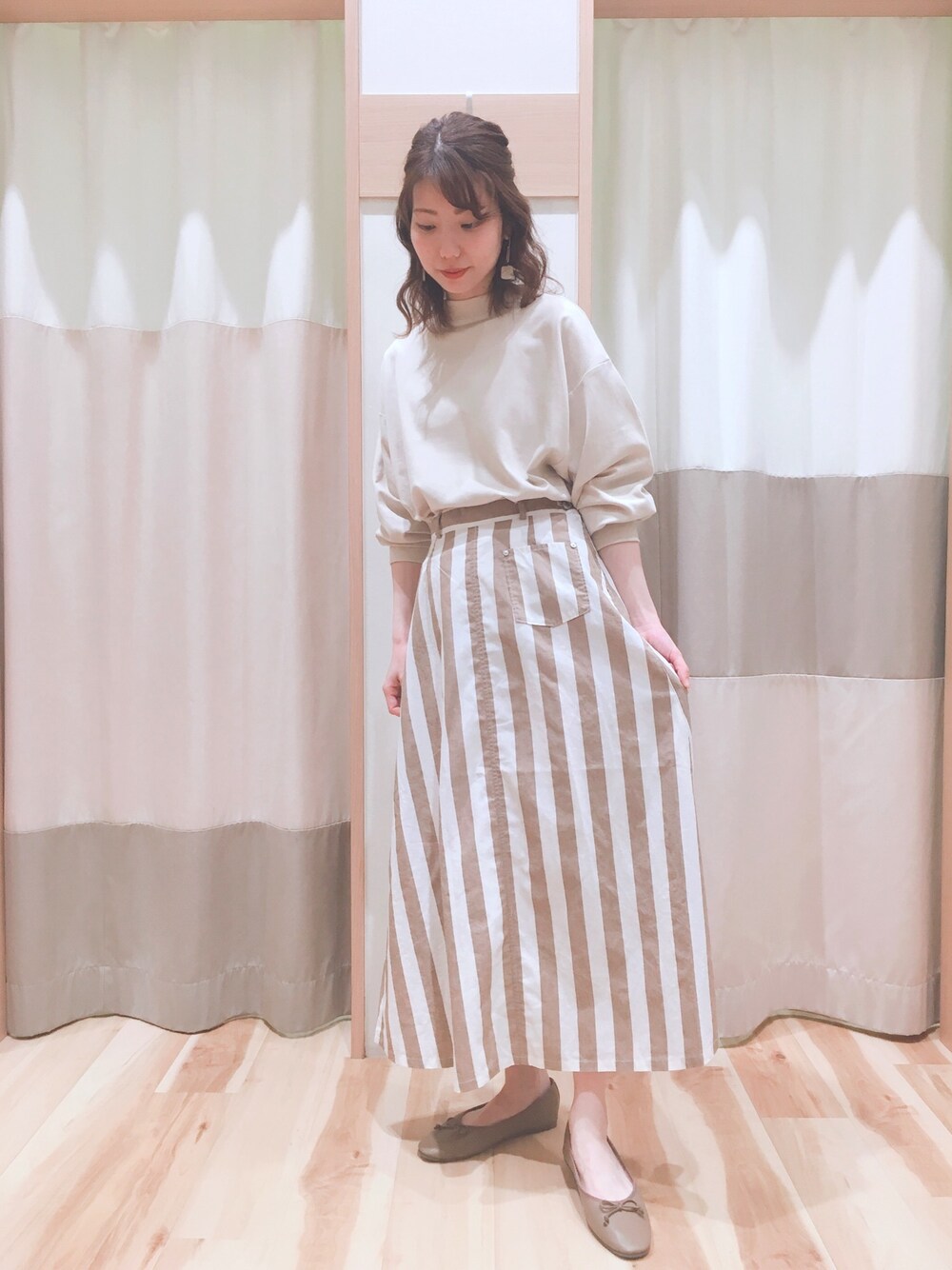 いつもご覧頂きありがとうございます⁂ 本日はrhythmからご紹介✴︎ シルエットが広がらないスッキリとした ストライプのスカートがお洒落度をグッと引き上げてくれます。 フロントにミニポッケが付いてるのもアクセントになってますよ♪ 一枚でもレイヤードスタイルでも楽しめますので、おススメです!