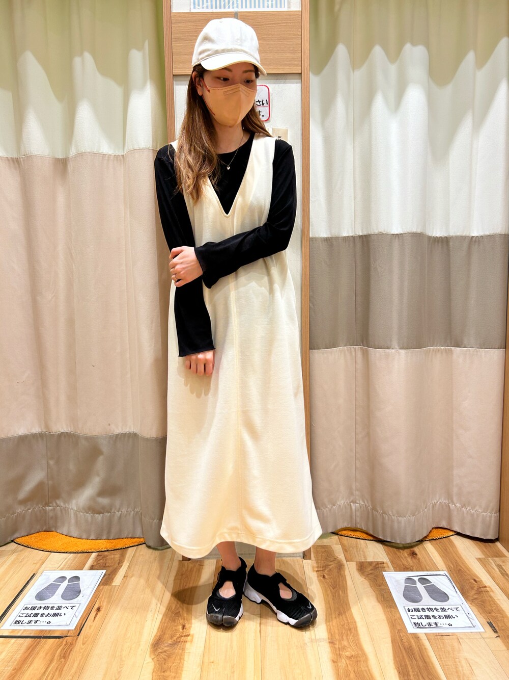 こんにちは𖤣𖥧𖥣。𖤣𖥧𖥣。 いつもご覧頂きありがとうございます♪ カットソー素材のVネックジャンスカに キャップでカジュアルな雰囲気に🥰✨
