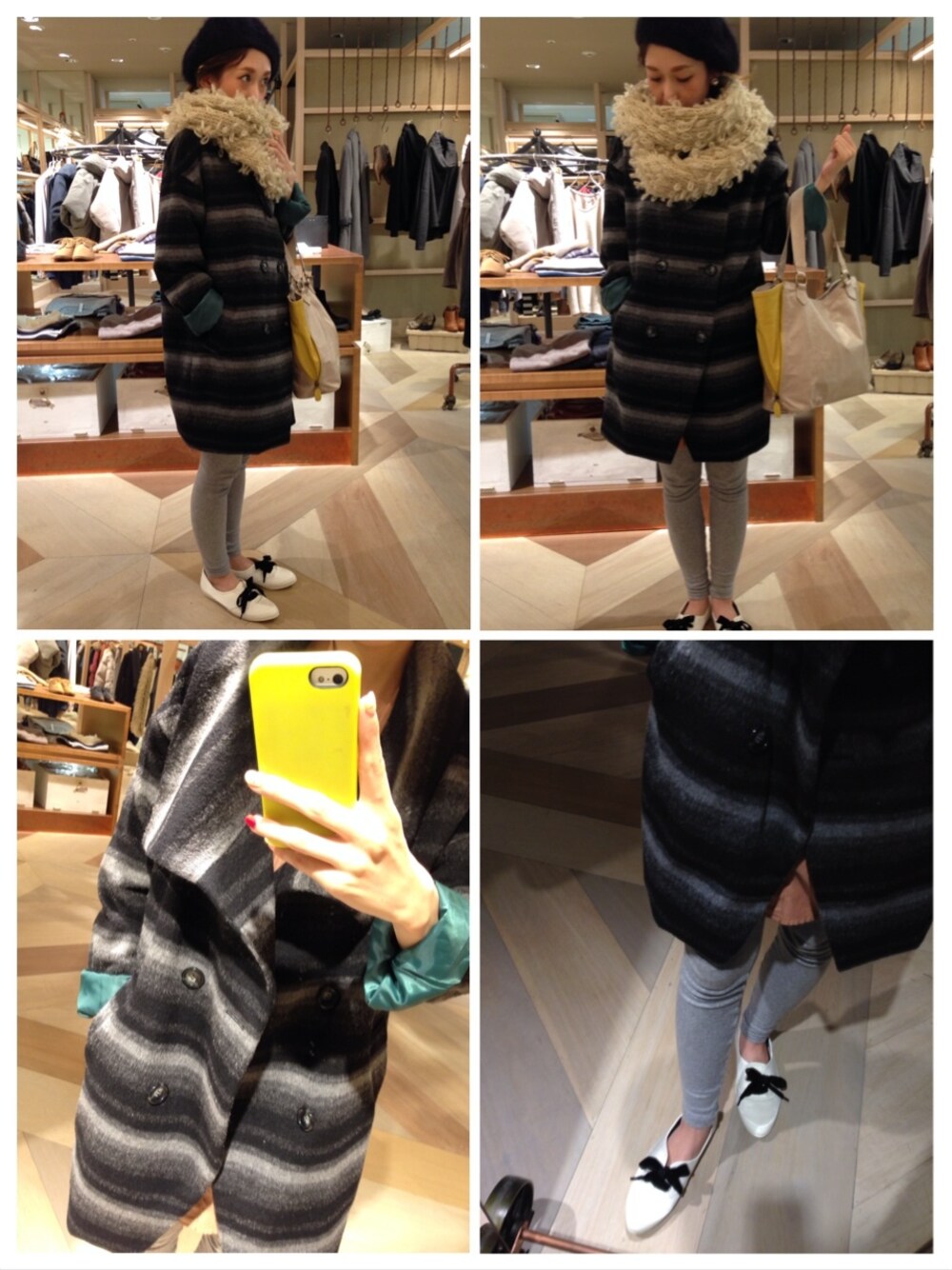 コートのボーダー具合がすき✳︎ 足もとはサテンスニーカーで✳︎