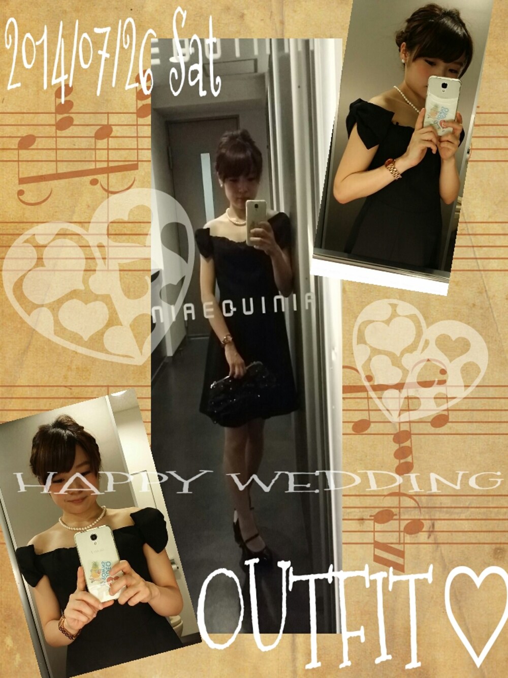 学生ときバイトでぉ世話になった先輩の結婚式💍 すごく素敵な結婚式だった💖 ワンピースは探すと長いのばっかりで、ずっと欲しかったのを試着したら、長さもぴったりだったからこれにしました(о´∀`о)🐤☀肩のとこがリボンで可愛いのです🎀黒はャだったけど、ワンピースが可愛いからこれでよし💖笑これにホワイトのストールかけてました🐤☀ 先輩💖happy wedding💒 one-piece♡MERCURY DUO Shoes♡Crystal Sylph