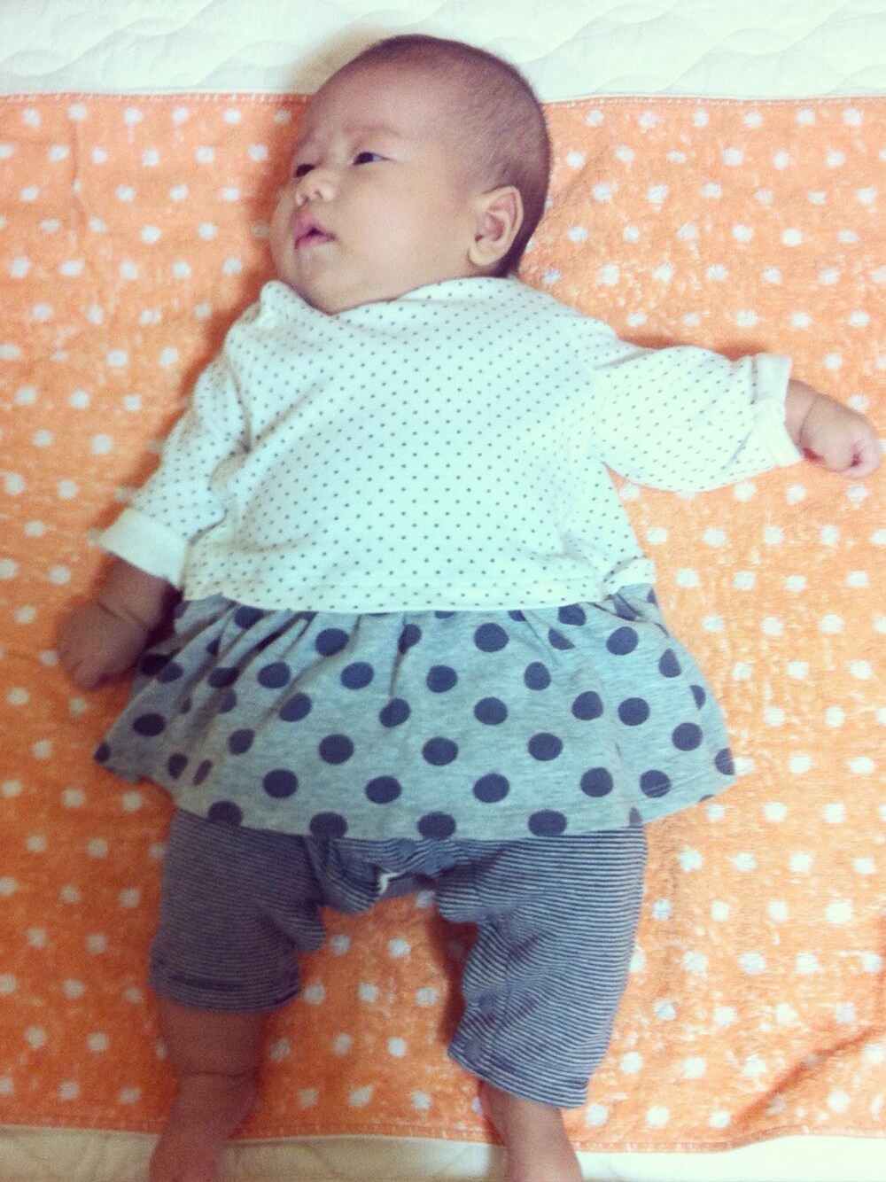 今日は家におじいちゃんとおばあちゃんが来てくれて、ユノご機嫌🎶 偶然背景もドットになりました(^_^;)