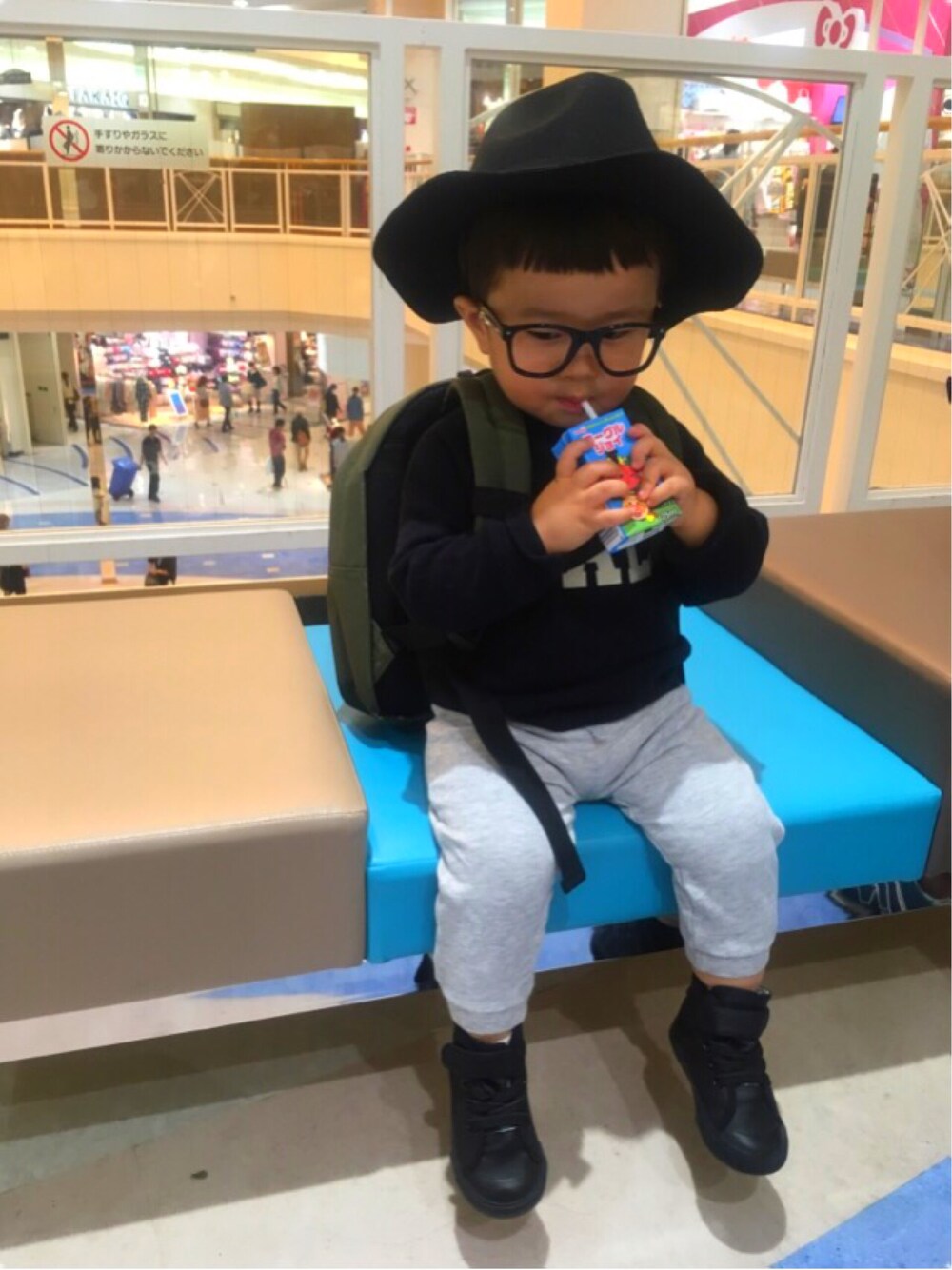 かいもん、いく? がねね、しー。(メガネ、する) くぅーしぷん、しー。(帽子ぽん、する) 最初はいやだと言っていたけど まんざらでもなくなってきたよ︎︎ ⤴︎︎ 高知では浮くんよね。。。