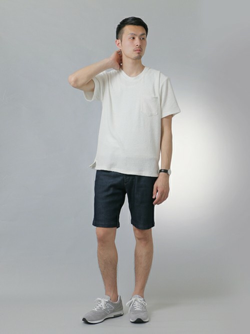 プレミアムなリネン、FRANDERS LINENのパイルTEEとニットデニムショーツの楽々コーデ。今年の夏もシンプルに行きたいです!
