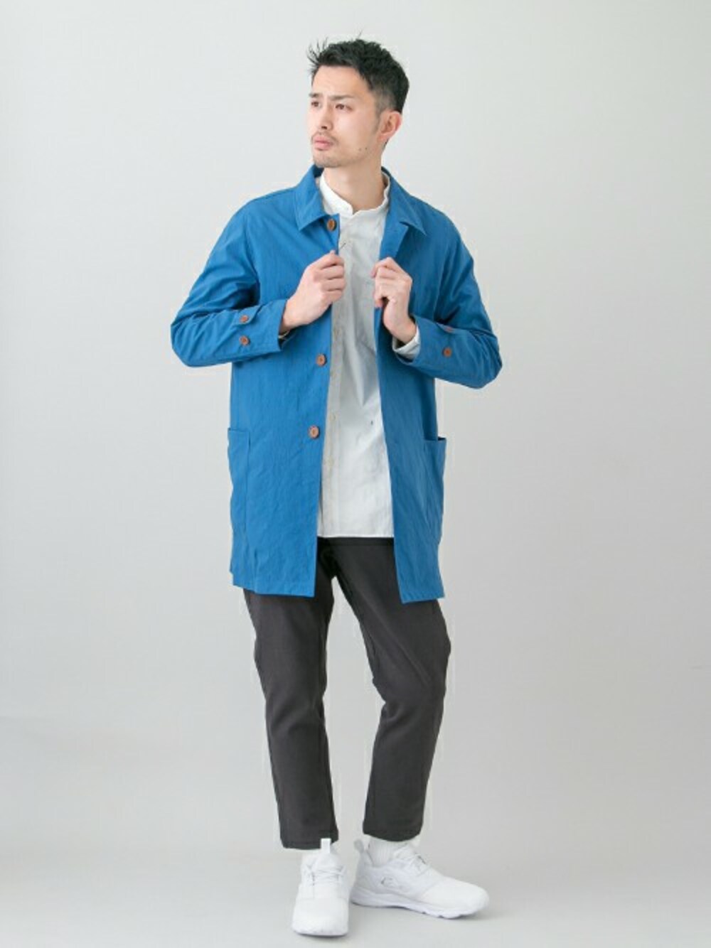 kondo(Sonny Label)のステンカラーコート「UR インディゴライクショップコート」を使ったコーディネート