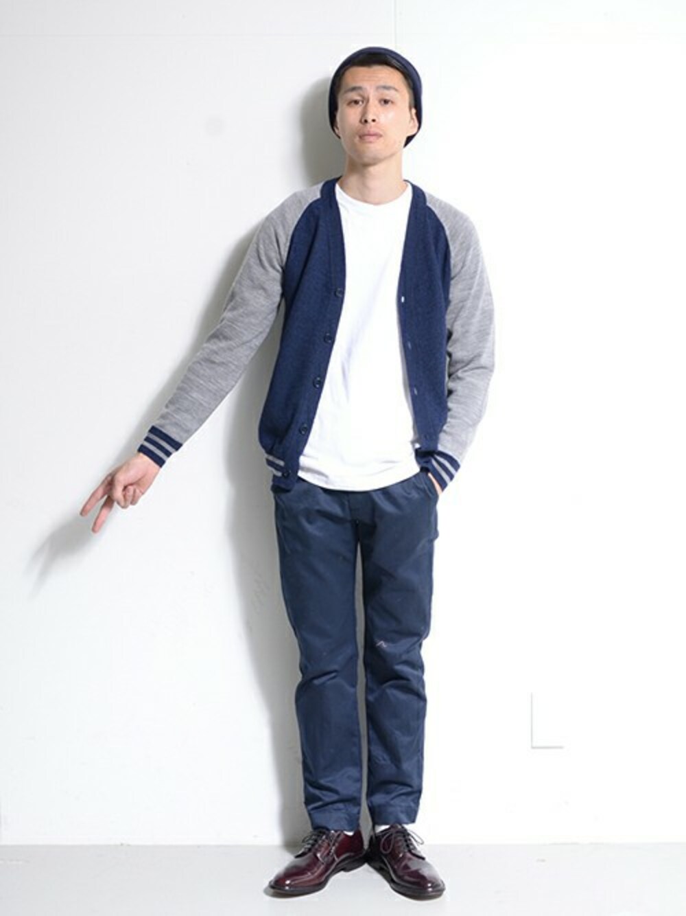 スタジャン風なデザインでストリートな雰囲気のニットカーディガン。身頃部分に圧縮ニットを使っており、風合いの良い仕上がりです。デザイン性のあるカーディガンですので、インナーはシンプルなカットソー等がおすすめです◎