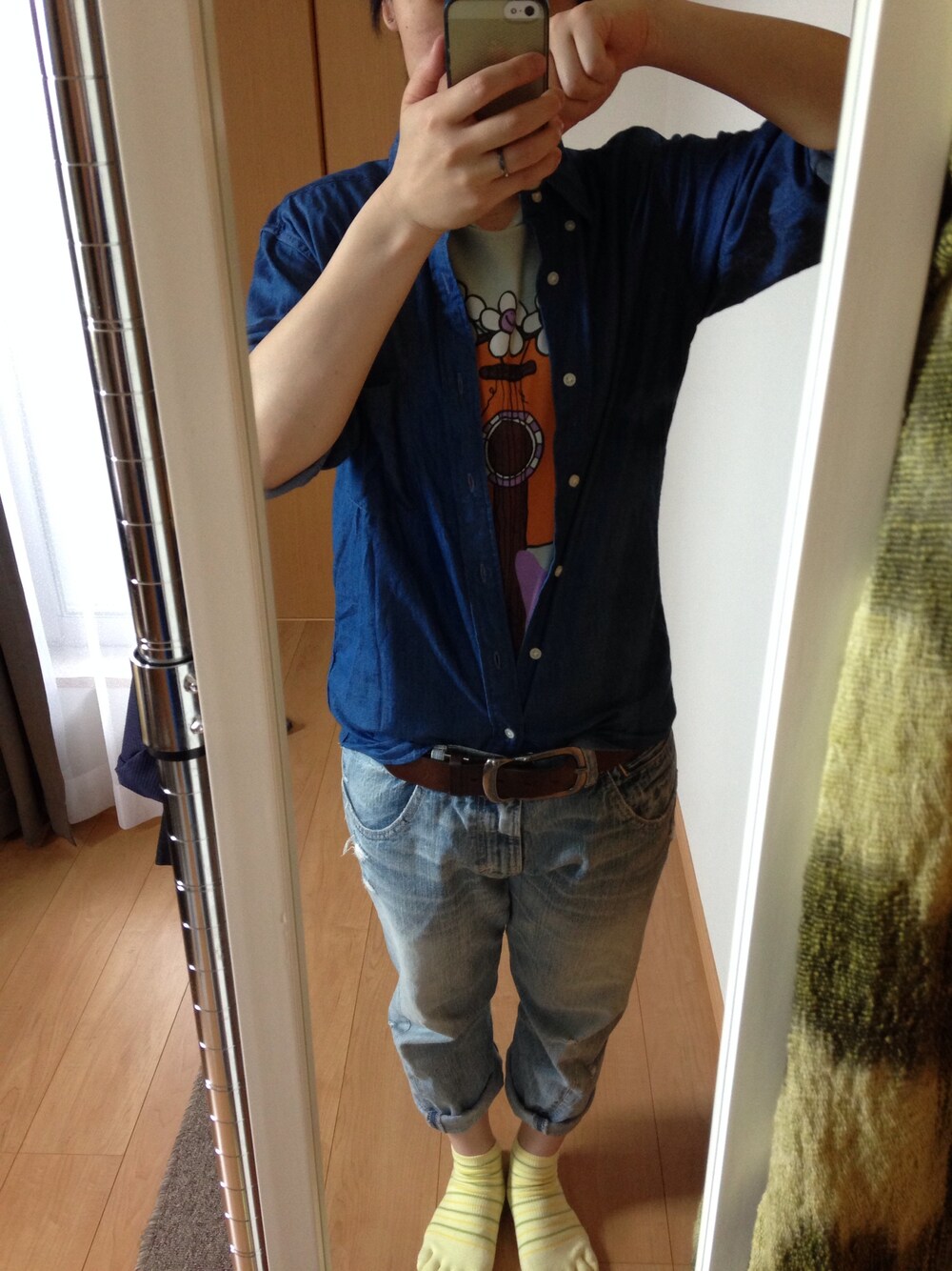 Tシャツ:ビームス デニムシャツ:UNIQLO