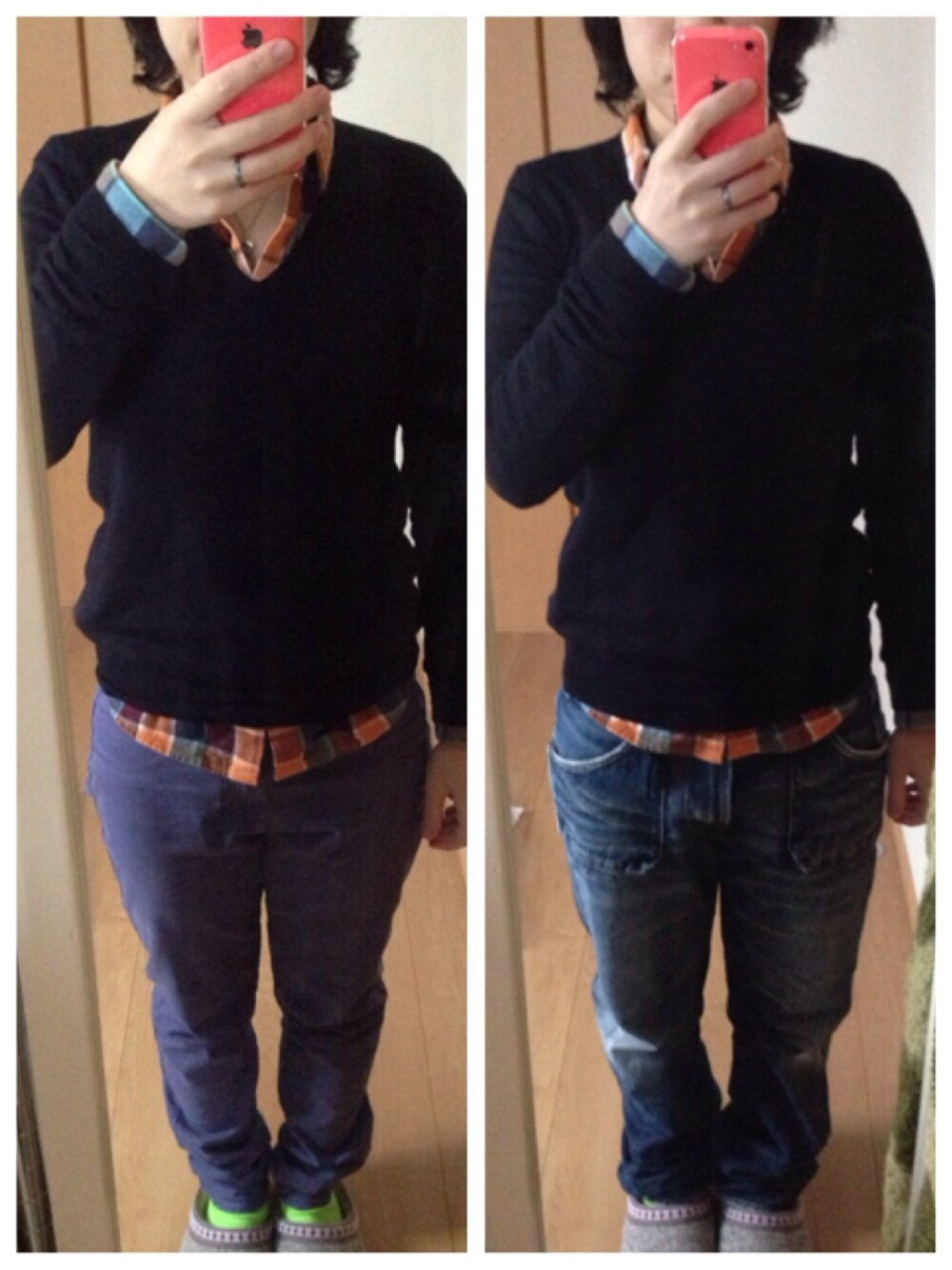 セーター:UNIQLO ネルシャツ:UNIQLO 右レギンスパンツ:UNIQLO 左ジーンズ:RNA 全身UNIQLO!! どんなもんだいw スウェットパンツSTYLEに挑戦したい 今日この頃...