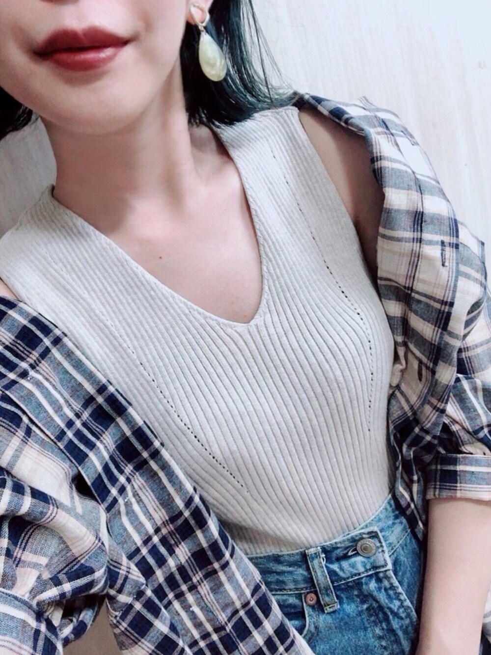 PairPairさんのチェックブラウスを カジュアルに着こなしてみました👖👟 髪色とリップの感じもとても良い〜 #PR