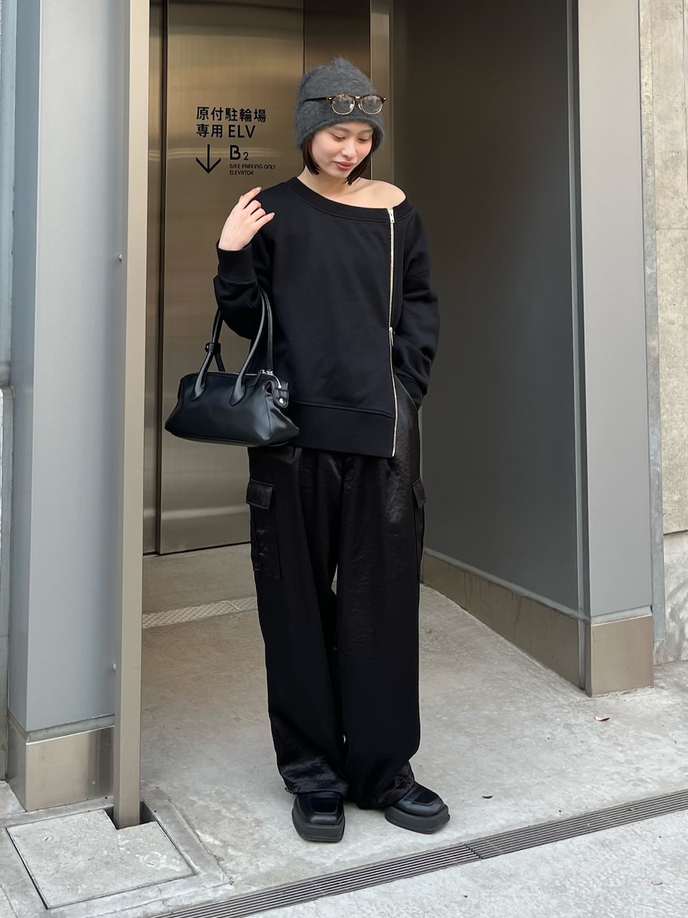 162cm/骨格ウェーブ ☆前ファスナーオフショルダースウェット/Fサイズ着用 スウェット素材のダブルジップ付きのオフショルスウェット🖤 綺麗めカジュアルな大人かわいいトップス! ワンショルにしてもボートネックとしても使いやすいです🎀 少しオーバーサイズで、おしりまで隠れる丈感です! ☆サテンカーゴパンツ/38サイズ着用 サテンのさらっとしたキレイめな素材なのにカーゴなのでキレイめカジュアル問わずで履けるパンツ✨ シャツやスウェットいろんなパターンで着回し抜群です◎