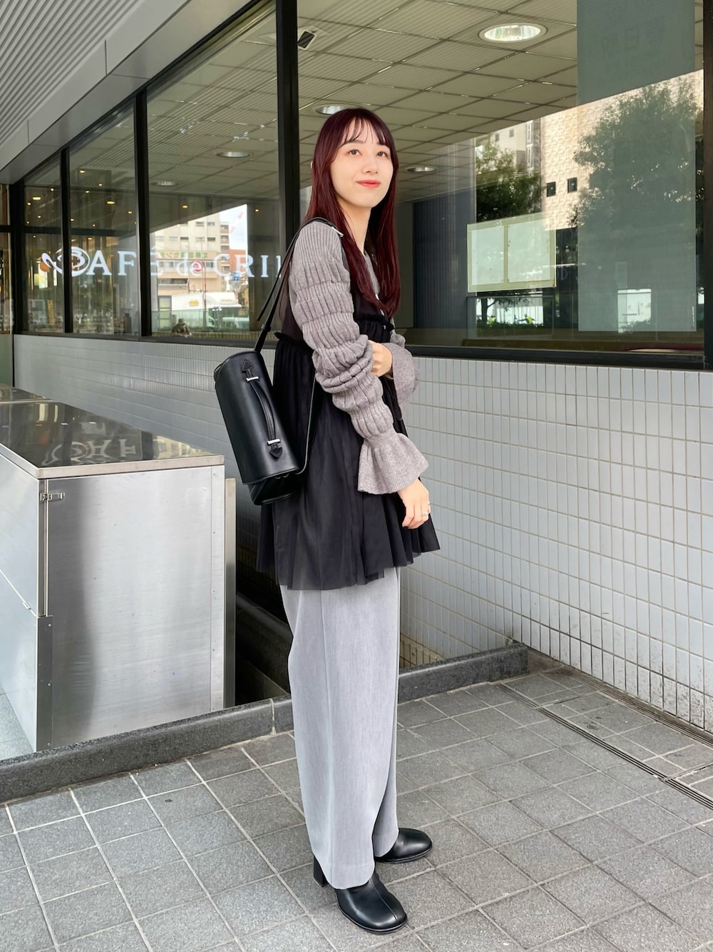 グレーワントーンコーデ。 ブラックをプラスして締まりのあるコーデに☺︎