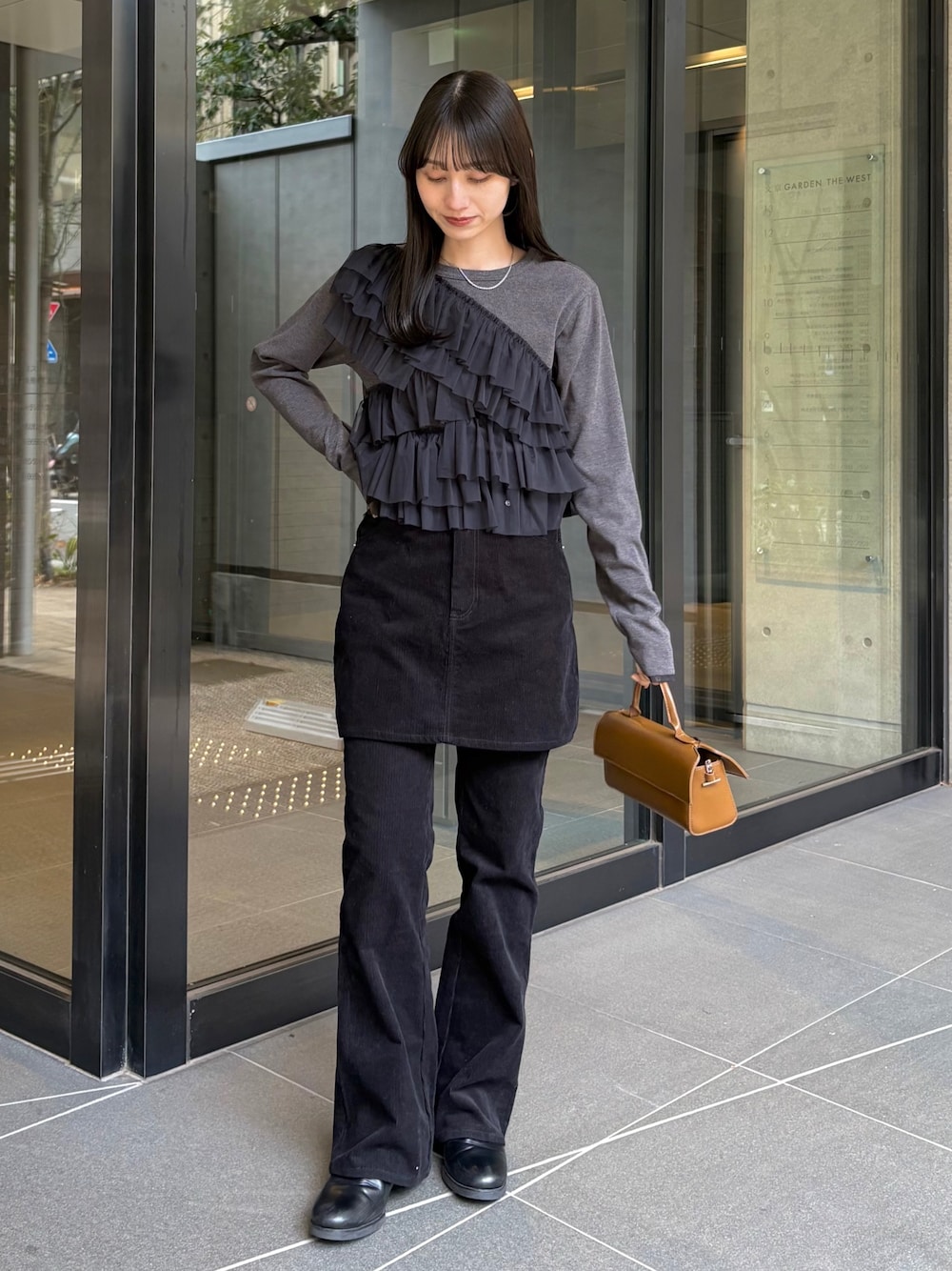kon_lemage(CAPRICIEUXLE'MAGE東京ドームラクーア店)のスカート「【新色/レイヤード対応】コーデュロイ台形スカート」を使ったコーディネート