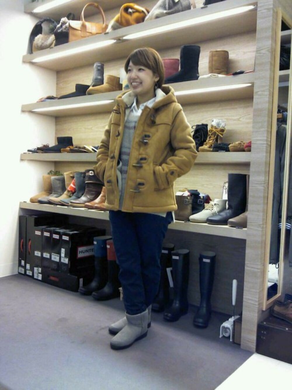 フェイクボアのコートはあったかく 着ぶくれせずに着られます。