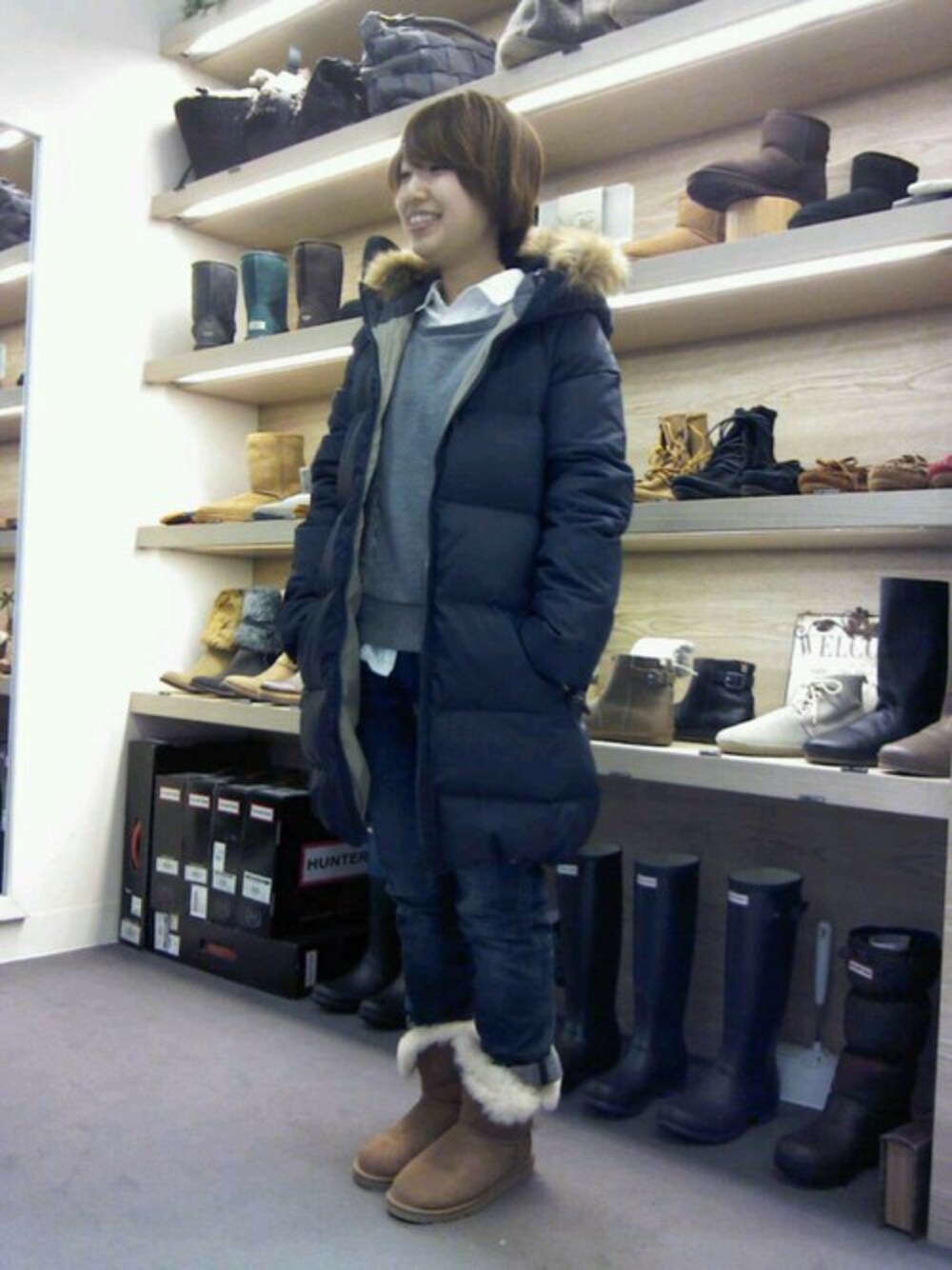 ダウンがタイトなのでパンツとあわせてほっそり。