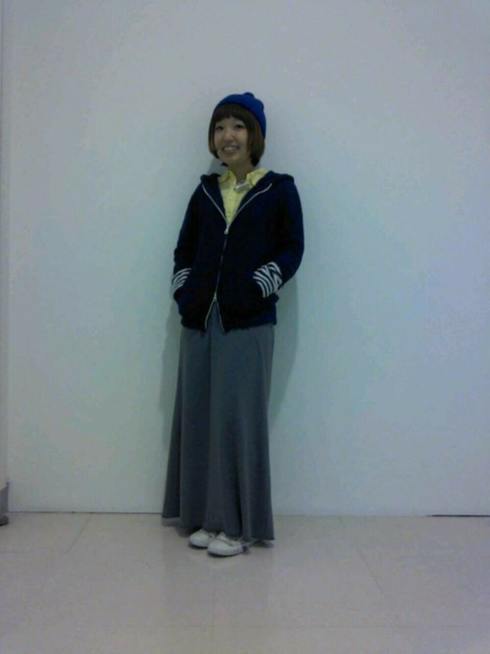 ニットキャップとスニーカーで合わせて スポーティーに着ました!