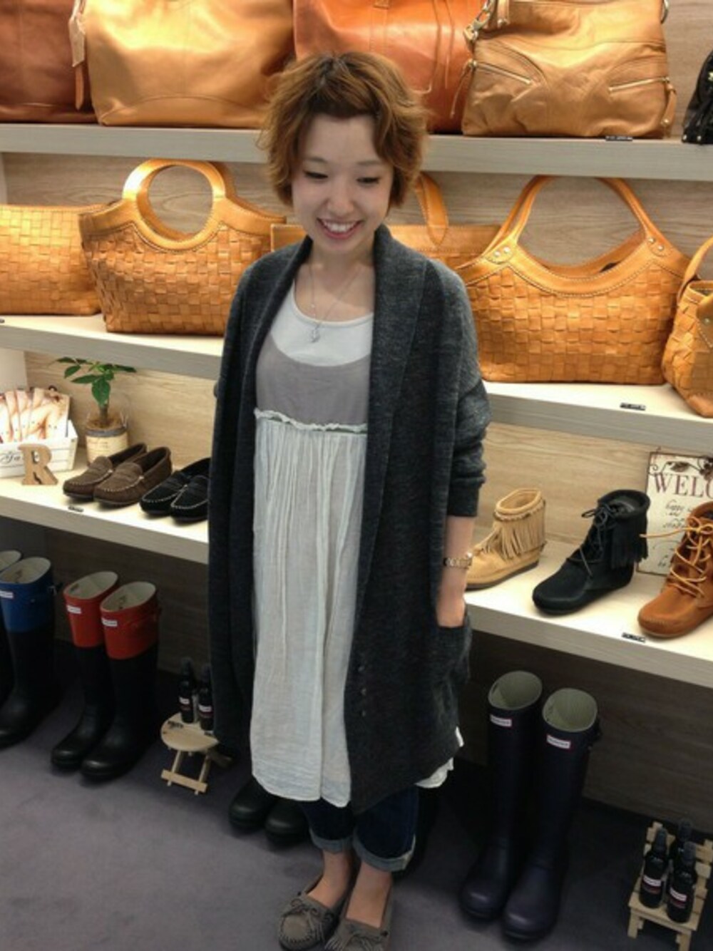 ニットで少し秋を先取りしました。 ワンピースとニットを同じ長さで着てあげると 背が低い方でもバランスよく着られます!