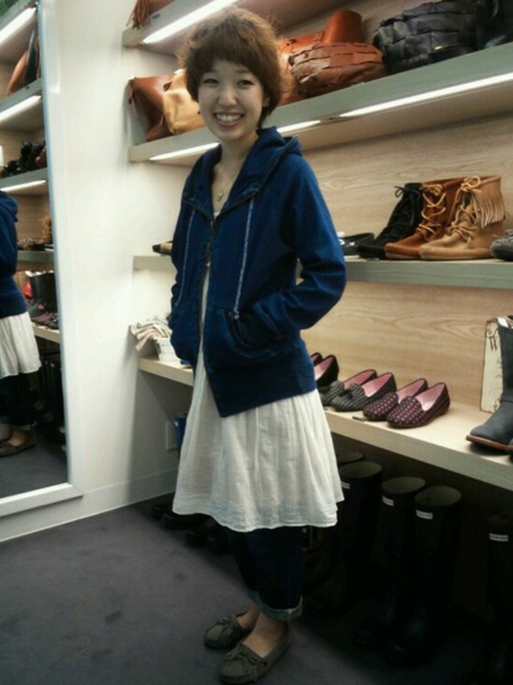 デニム×デニムですが ワンピースをはさんで 可愛らしくあわせました。