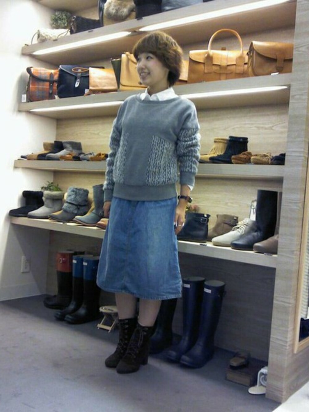 定番の白シャツの上に新作ニットを重ねて 朝晩の冷えにも対応した コーディネートにしました。