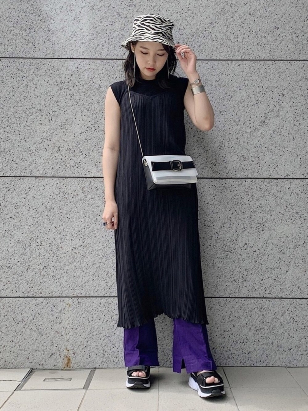キャミワンピも黒×紫 をチョイスで モードストリートに!! 着用itemの詳細は Instagram→ @hao_pb .st STAFFBOARD → ハオ で検索👀🔎