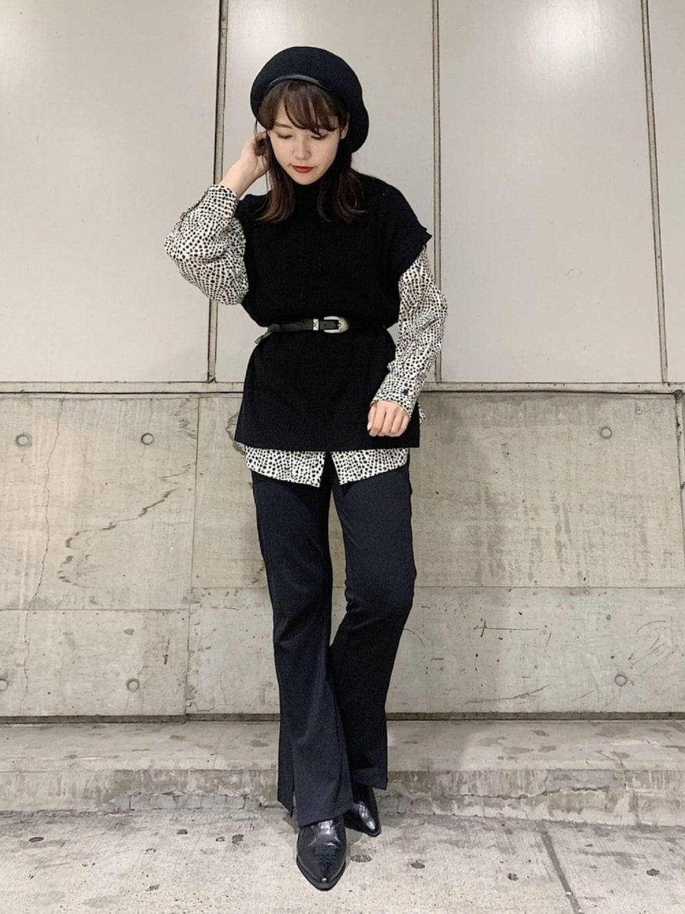 ニットベストの中は白シャツ、白ロンtもいいけど、 アニマル柄シャツ合わせがツボすぎる🥰 着用itemの詳細は Instagram ▶ 《 @hao_pb 》 STAFFBOARD ▶ 《 ハオ 》 で検索🔍 毎日コーデ更新中!