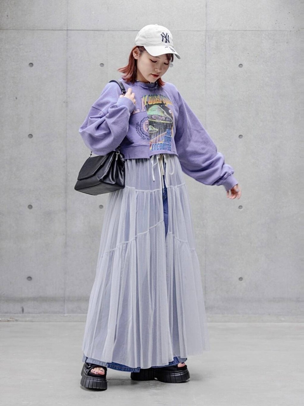 ハオ(PAGEBOY札幌ステラプレイス店)のスウェット「リメイクライクショートスウェット」を使ったコーディネート