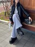 リアル休日コーデ🌸 レザージャケット半額以下‼️‼️ 私もこのタイミングで購入しちゃいました✌️ ジャケットの中にはスウェットやニットも 合わせれるので、春.秋の軽めなアウターとして大活躍間違いなしです!
