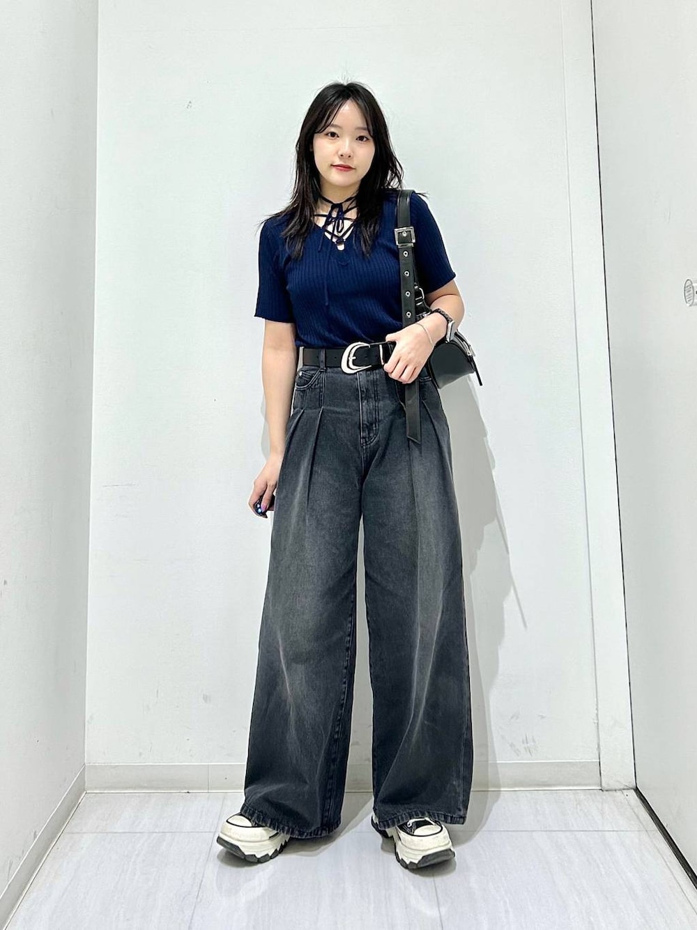 リアルバイコーデ🖤 ⭐各アイテムのおすすめポイント  ̄ ̄ ̄ ̄ ̄ ̄ ̄ ̄ ̄ ̄ ̄ ̄ ̄ ̄ ̄ ̄ ̄ 【トップス】 前後どちらを前にしても着用できる2WAY仕様 レースアップは そのまま結んだり、首に巻いたりとアレンジ自由✨ ストレッチ性がありつつも締め付け感のない素材なので 身体のラインを拾いすぎない細見えニットです👀 【ボトムス】 158cm/Mサイズ 身長158cmの方はS・Mサイズどちらでも 引きずらない丈で着ていただけます! フロントのタックでメリハリ出て 腰回りをすっきりと見せてくれます👀