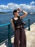 休日コーデ⭐️私の夏休みは函館旅行! 気温が35°と、沢山美味しいものも食べたかったので 涼しくストレスのないスウェットパンツを購入して着て行きました🚗 タンクトップはフリルデザインに一目惚れして購入✌️