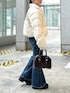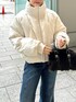 【サスティナウォームナカワタブルゾン】 暖かい空気をキープできる、再生繊維のクラウド中綿を使用✨✨綿量たっぷり!とっても軽い! 首元は閉じてスタンドネックでも、 開いてビッグカラーにしてもどちらも顔まわりすっきりと見せてくれます! ⭐️裾にはコードが付いてるので、 お尻隠れるミドル丈でも着用◎ 写真のようにショート丈での着用もできます◎‼️