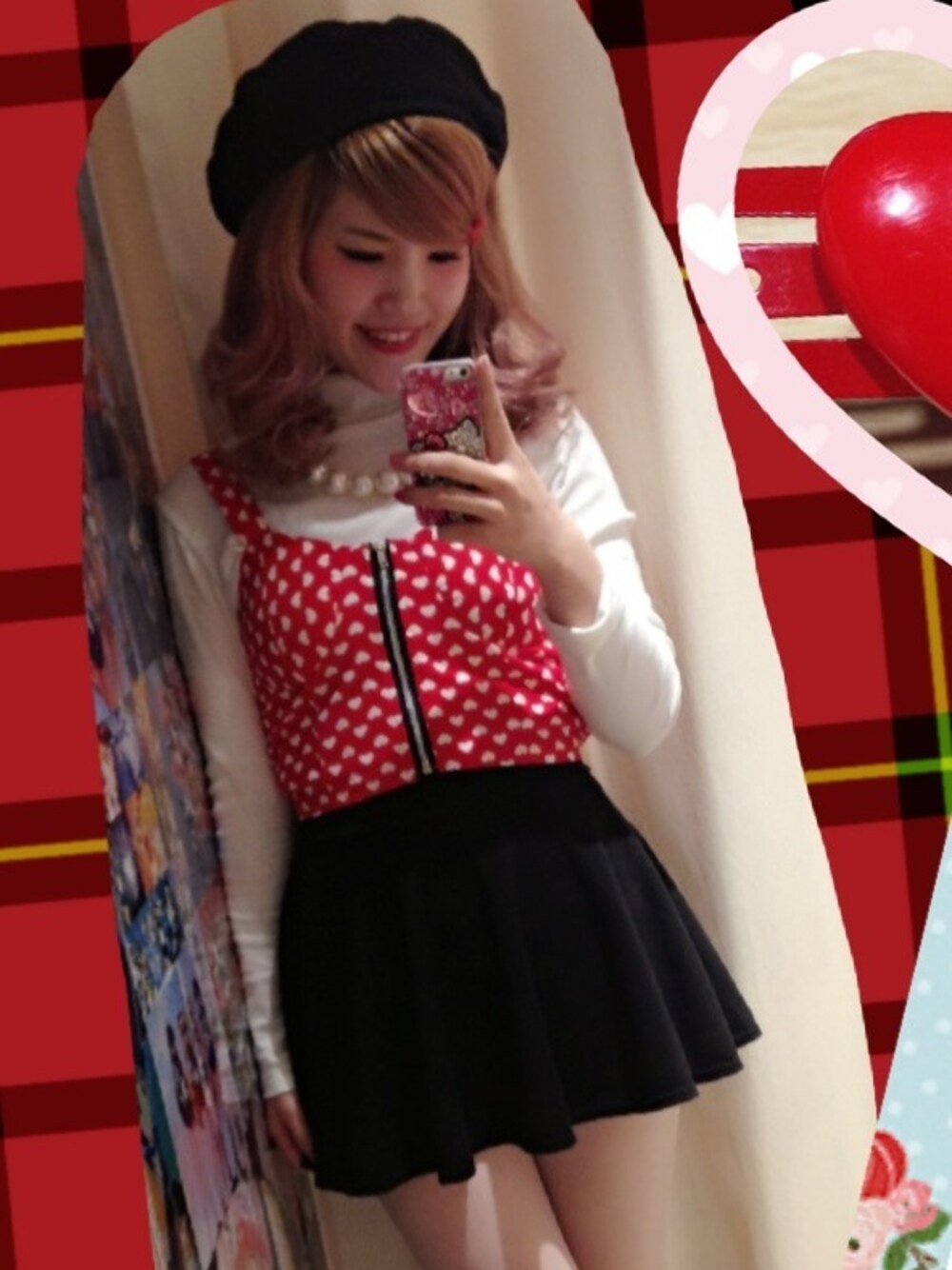 ハート柄の赤いビスチェに合わせて可愛くしてみました(*^o^*)