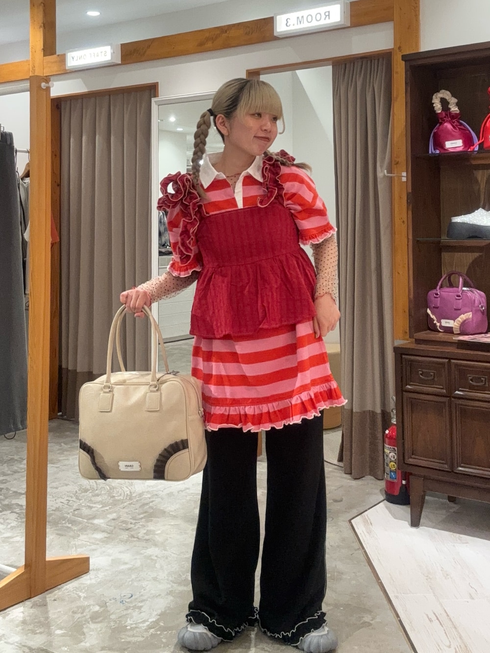 ラガーシャツでカジュアル!でもでも! 甘さも忘れたくない!!ということで、フリルをふんだんに使ったコーデです!! ライブ用にバッグも大きめ〜🎶