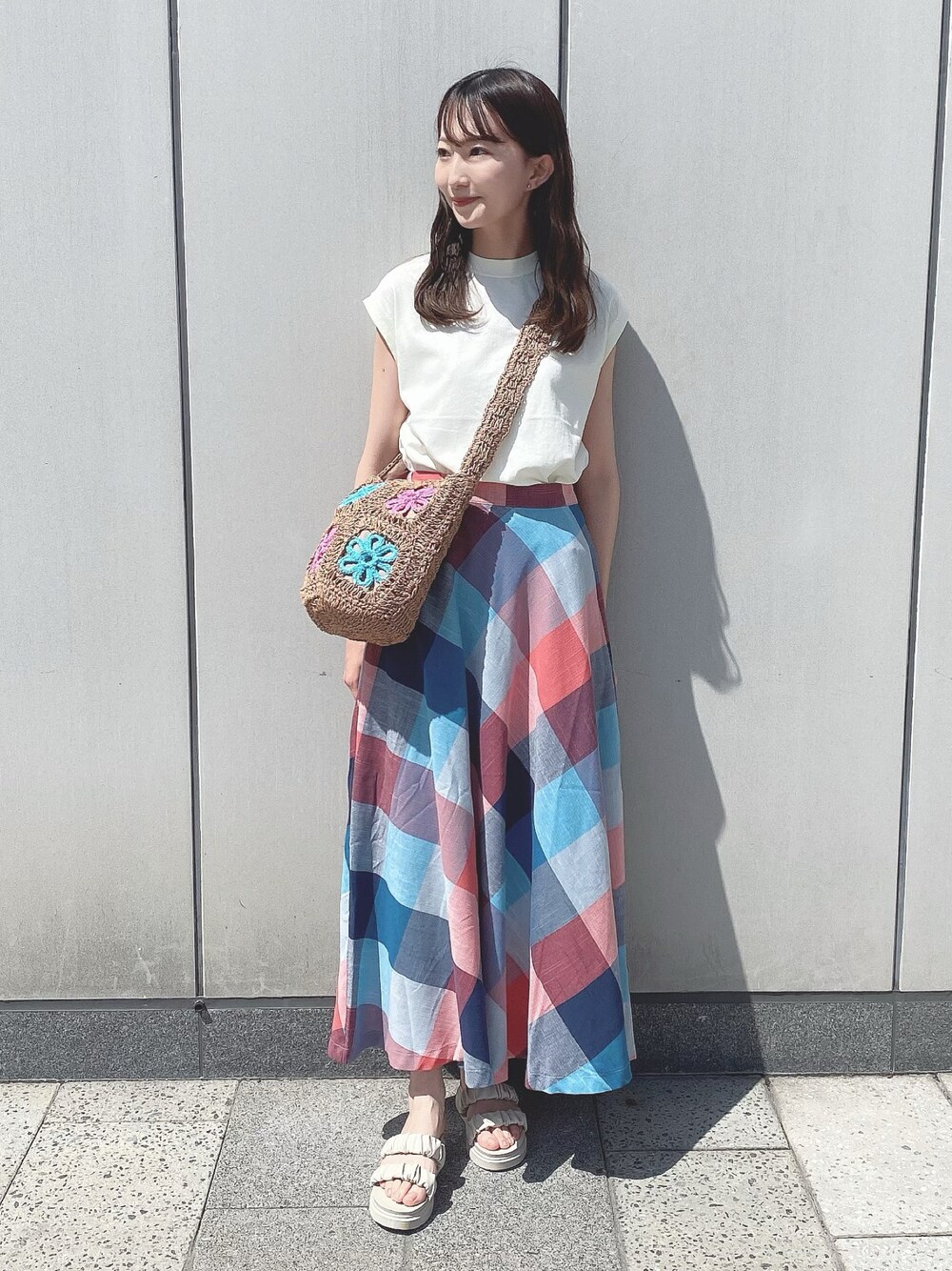【普段着用サイズ】 トップス→ Mサイズ ボトムス→ Mサイズ(物によりSサイズ) 身長164cm ❤︎トップス ピグメント加工されており、ヴィンテージ感ある1着♪ シンプルなのでどんなボトムスとも合わせやすいです! ❤︎スカート 大きなチェック柄で、華やかコーデが楽しめるスカート! ウエストゴムで履き心地も◎