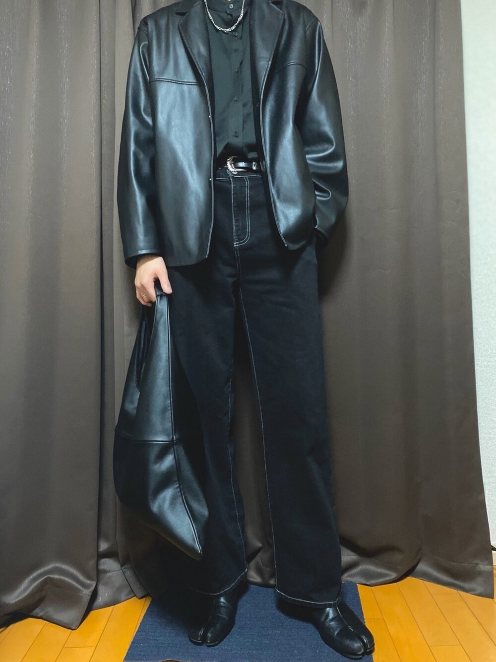 ドゥンスのブルゾン「シンセテッィクレザージャケゾン(HARE)」を使ったコーディネート
