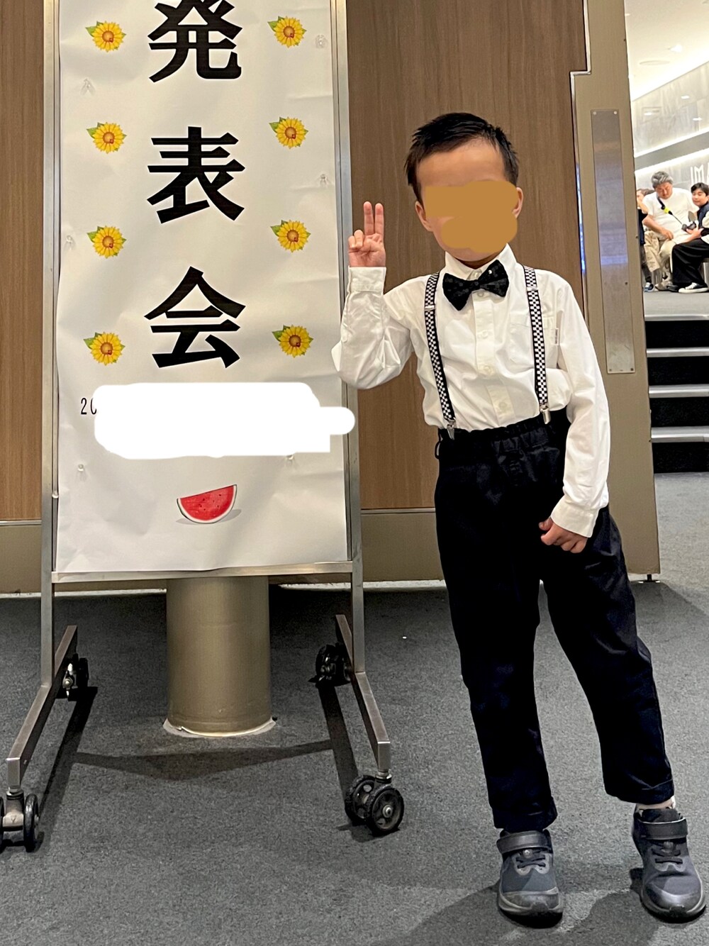 サスペンダーと黒蝶ネクタイでキメました。