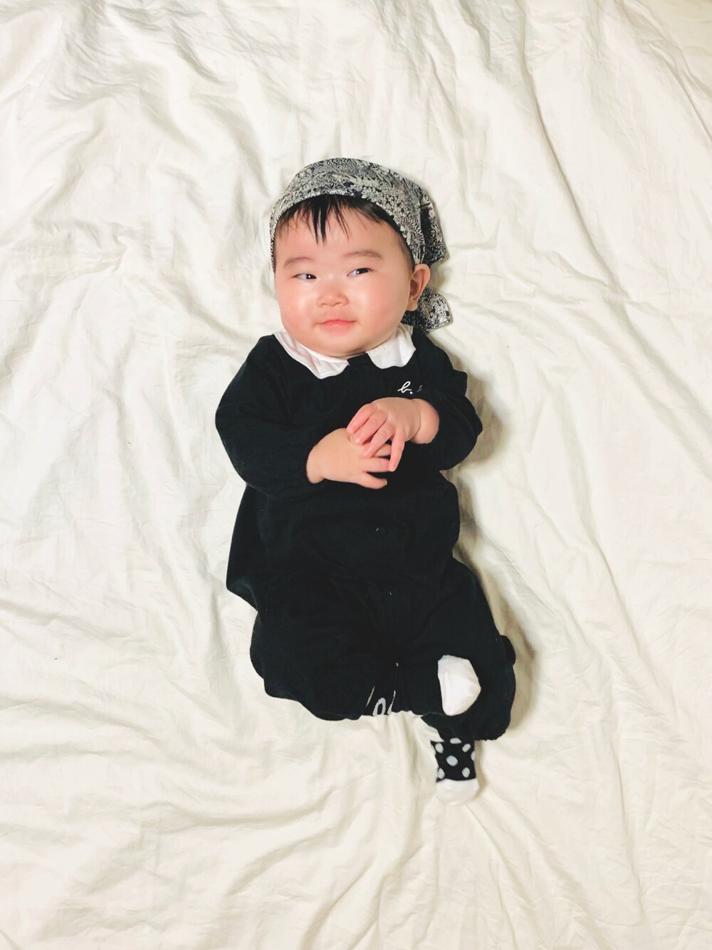 KOOOのロンパース「ベビー トロンプルイユ コットン 長袖 2wayオール」を使ったコーディネート