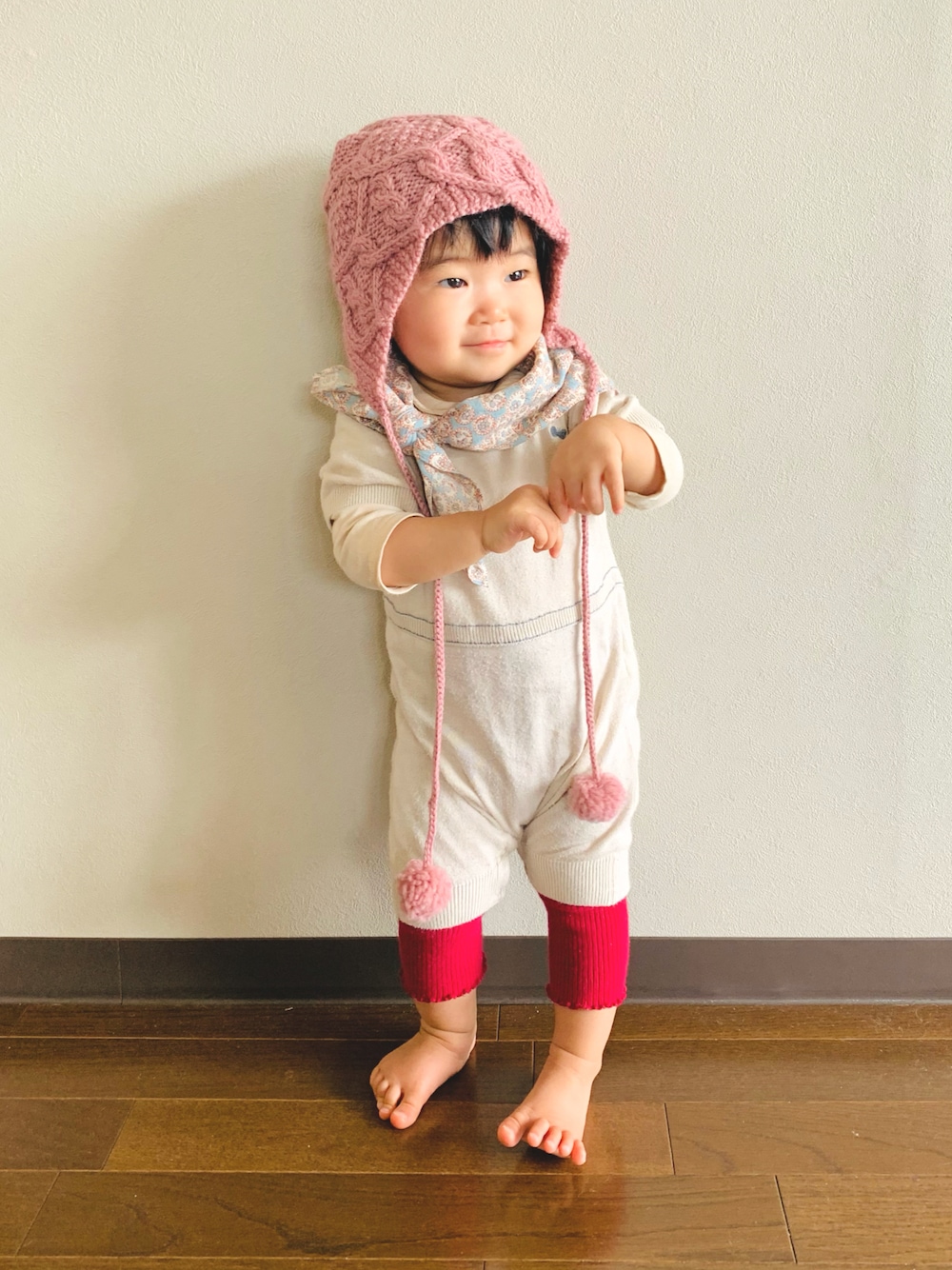 ポンポン付きボンネットは母の母が編んだよ🧶