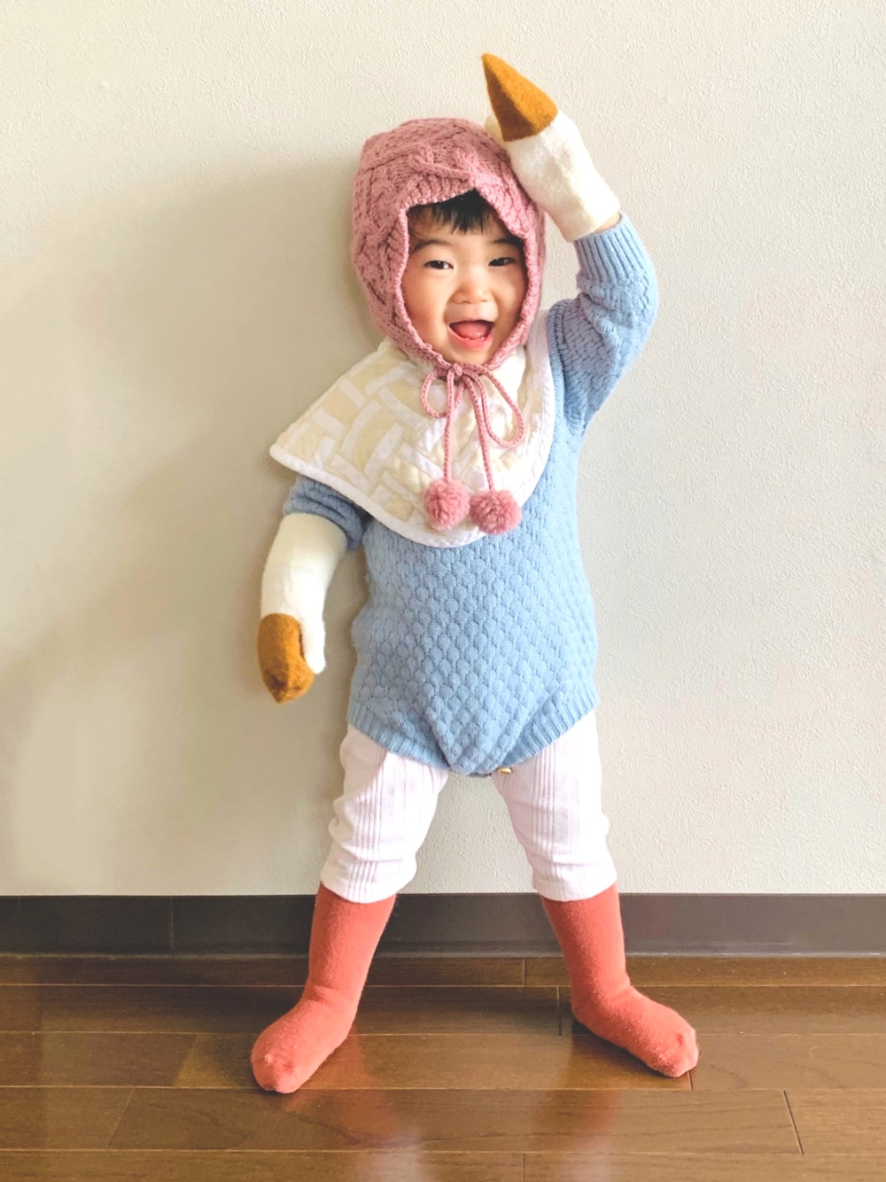 KOOOのロンパース「ニットロンパース」を使ったコーディネート