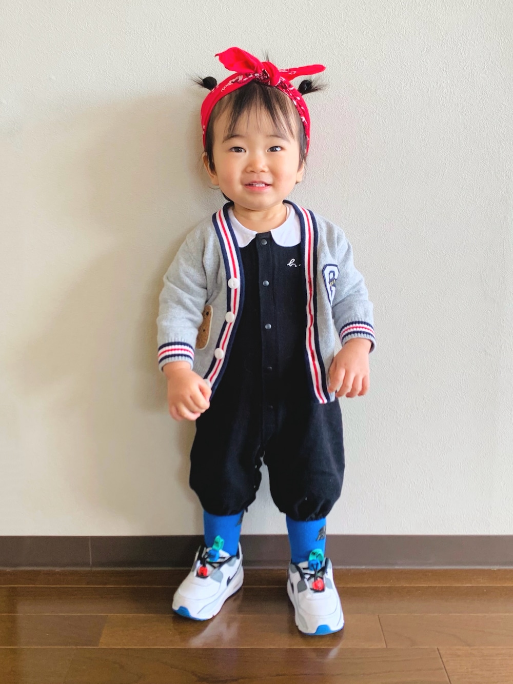 KOOOのロンパース「ベビー トロンプルイユ コットン 長袖 2wayオール」を使ったコーディネート