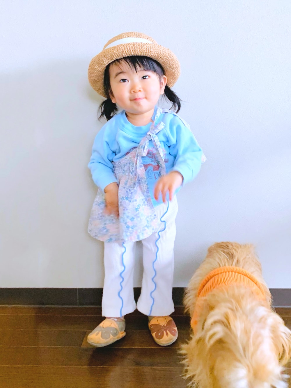 エプロンを斜めに着て付けフリル的な🤭 いつものコーデが違って見える。