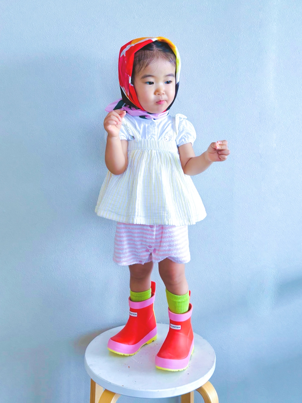レインブーツとスカーフ、色が一緒で完璧に合ってくれました💫