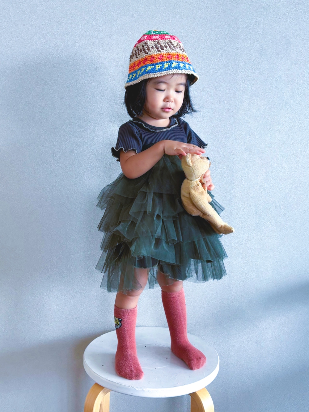 チュールのロングスカートを胸位置で履いてビスチェ風に。 これだけでいつもと違う着こなしが楽しめます🙌