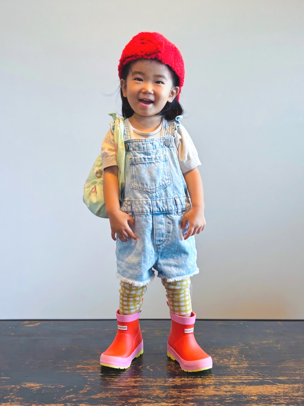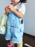 KOOOのサロペット/オーバーオール「ウォッシュウェル フリル デニムショートオール (幼児)」を使ったコーディネート