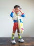 ニットにキルティングベスト、ショートパンツで季節感を出して。 ソックスのレイヤードで遊び心も○