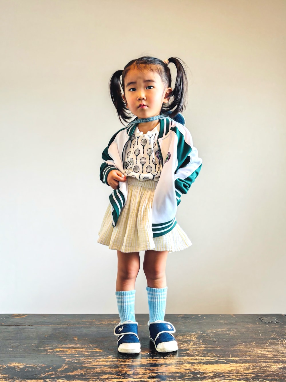 トラックジャケットにミニスカはテッパン!